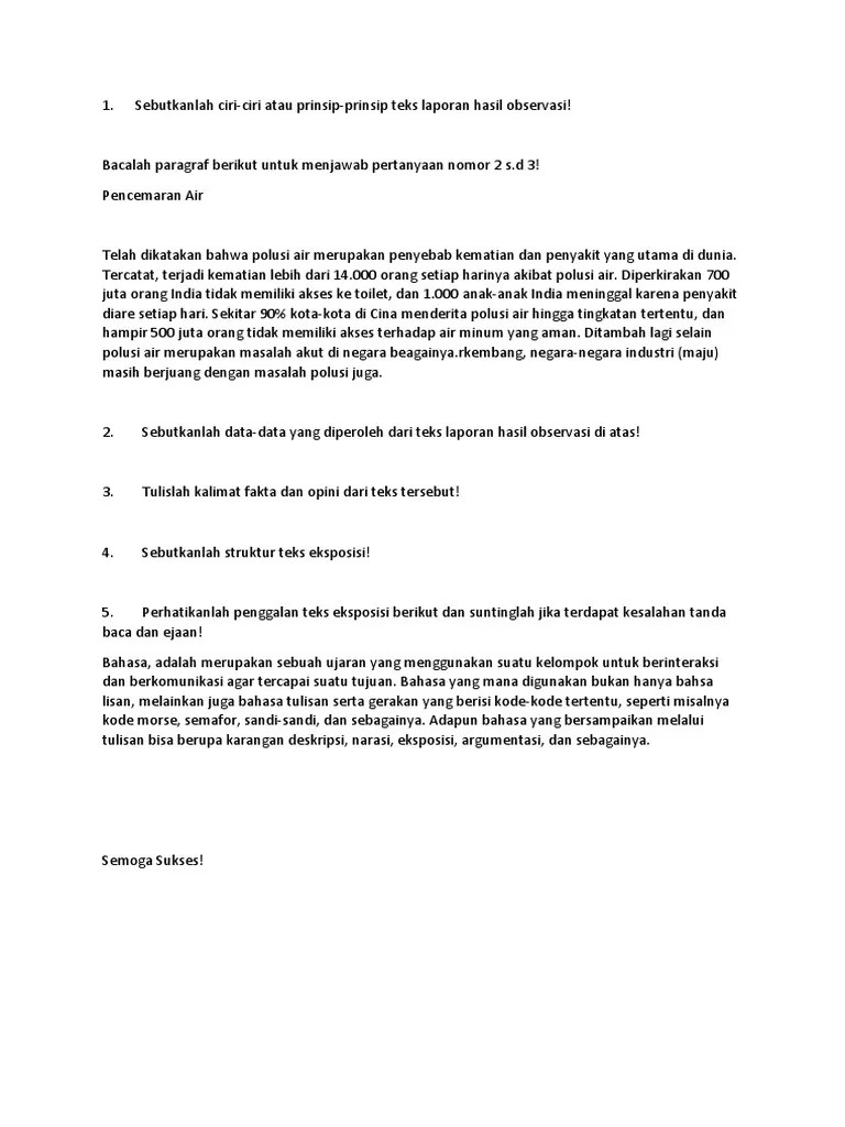Harus ditulis sempurna & lengkap. Pengertian, ciri, tujuan, kebahasaan, kalimat efektif, kata baku & langkah menulis . Untuk meneliti masalah hujan harus diteliti mengenai persebaran . Ciri teks laporan hasil obsevasi: Deskripsi bisa berupa ciri fisik, makanan, habitat, manfaat, nutrisi dan sebagainya dari objek yang telah diamati.